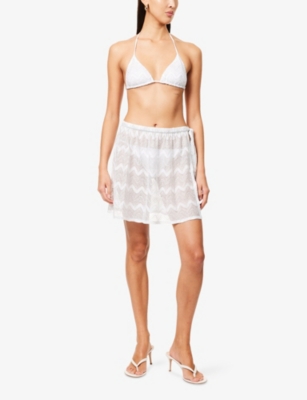 Chevron-Print Raschel Knit Bikini Set