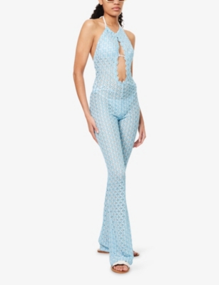 Halterneck Flared Knitted Jumpsuit