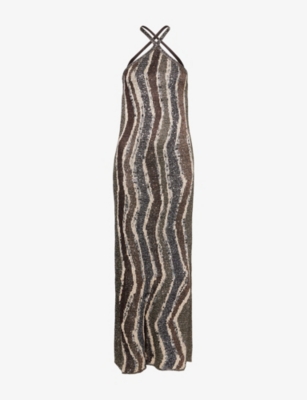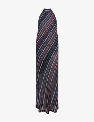 Striped Halterneck Knitted Maxi Dress