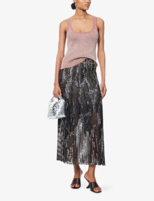Metallic Printed Knitted Midi Skirt