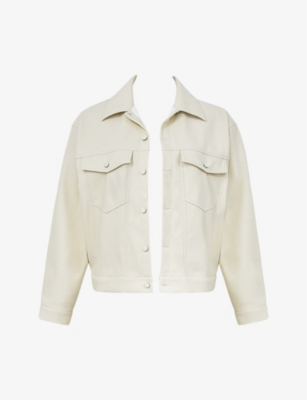 Contrast-stripe slim-fit vegan-leather biker jacket
