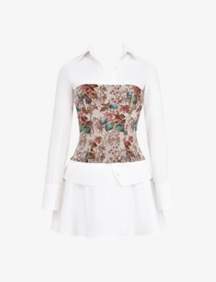 Halterneck Corset Stretch-Cotton Twill Mini Dress