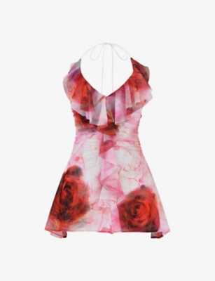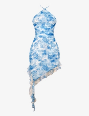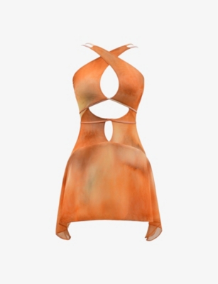 Cut-out halter-neck ombre stretch-mesh mini dress