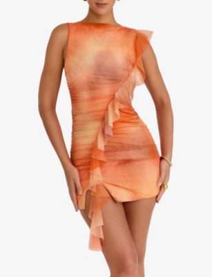 Ombre cut-out slim-fit stretch-mesh mini dress