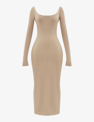 Open-back slim-fit long-sleeve stretch-jersey maxi dress