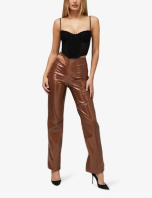 Hasten cut-out wide-leg mid-rise faux-leather trousers