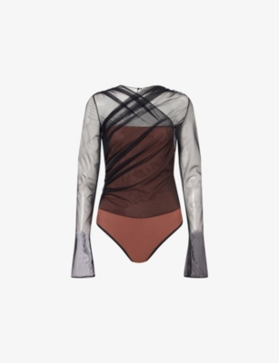Draped Long-Sleeves Stretch-Wove Bodysuit