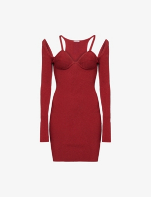 Cut-Out Long-Sleeves Knitted Mini Dress