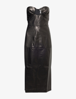 Strapless Corset Leather Midi Dress