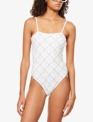 Oceanus x Zandra Rhodes Swirlshell Beaded Swimsuit
