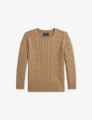 Boys’ Logo-Embroidered Cable-Knit Cotton Jumper
