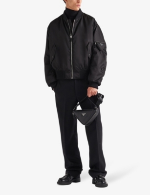 PRADA: Triangle-Patch Leather Bomber JacketPRADA: Triangle-Patch Leather Bomber Jacket