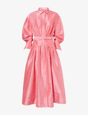 Narcissa Bow-Embroidered Taffeta Midi Dress