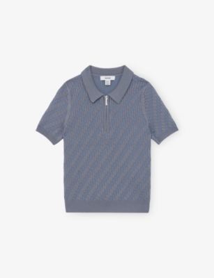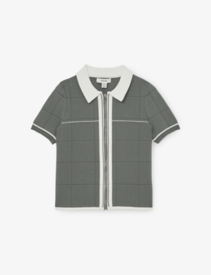 Baxter Windowpane-Pattern Knitted Polo Shirt 9-13 Years