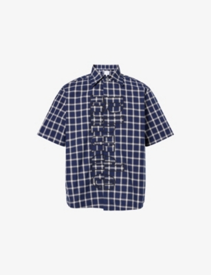 Check-Print Short-Sleeves Cotton-Poplin Shirt