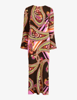 Paisley-print crepe fluted-cuff crepe maxi dress- Discount price:€111.00