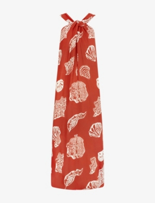 Seashell-Print Halterneck Woven Maxi Dress- Discount price:€62.00