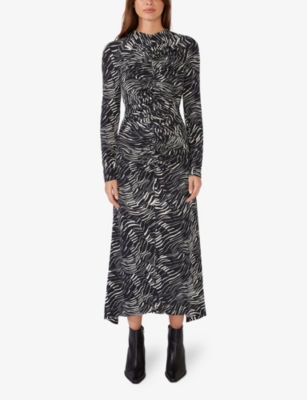 Abstract-Pattern Round-Neck Woven Midi Dress- Discount price:€50.00
