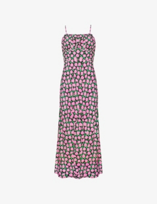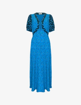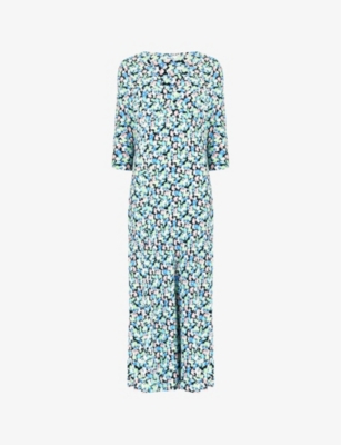 Floral-Print Frill-Front Woven Midi Dress- Discount price:€75.00