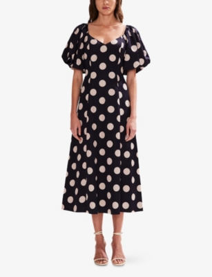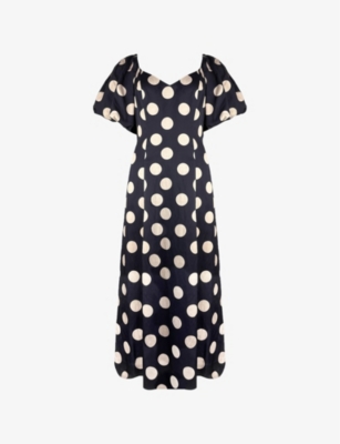 Yasmin Spot-Print Puff-Sleeve Woven Midi Dress- Discount price:€124.00