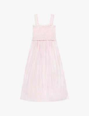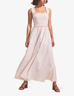 Striped Shirred-Bodice Stretch Cotton And Linen-Blend Maxi Dress- Discount price:€87.00