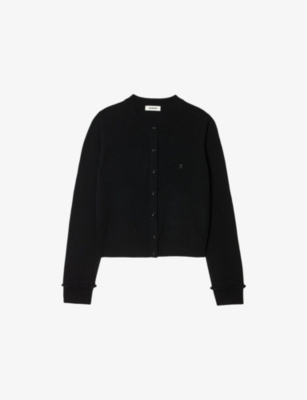 SANDRO: Round-neck ruffle-cuff wool and cashmere cardiganSANDRO: Round-neck ruffle-cuff wool and cashmere cardigan