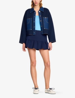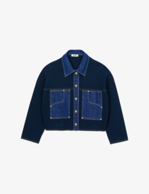 SANDRO: Pointed-Collar Denim-Trim CardiganSANDRO: Pointed-Collar Denim-Trim Cardigan
