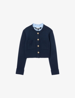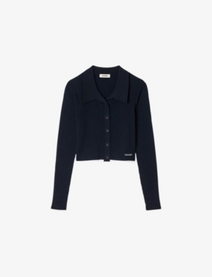 SANDRO: Ribbed Cropped Knitted CardiganSANDRO: Ribbed Cropped Knitted Cardigan