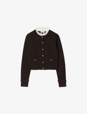 SANDRO: Ruffled-Collar Long-Sleeve Wool-Blend CardiganSANDRO: Ruffled-Collar Long-Sleeve Wool-Blend Cardigan