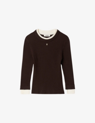 SANDRO: Brand-Plaque Layered-Trim Knitted JumperSANDRO: Brand-Plaque Layered-Trim Knitted Jumper