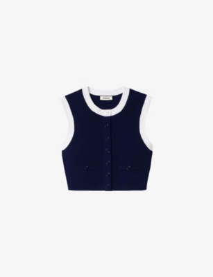 SANDRO: Sleeveless Cropped Knitted CardiganSANDRO: Sleeveless Cropped Knitted Cardigan