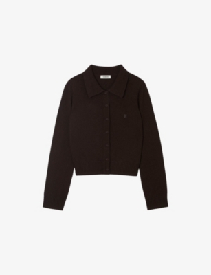 SANDRO: Contrast-Collar Button-Down Knitted CardiganSANDRO: Contrast-Collar Button-Down Knitted Cardigan