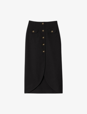 Sandro was founded in 1984 in the heart of Paris. Today, it's known for its clean lines and attention-commanding graphics. In its women's skirt range, you'll find an assortment of Sandro's eye-catching prints and fine fabrics: think shiny leather, faded denim and organic cotton. Pieces with flattering high-waist cuts accentuate your figure; wear yours with a tucked-in T-shirt or cropped jumper for the full effect. After a textured material? Sandro's wool and tweed skirts are ideal for combining with tights for days spent in the office.
