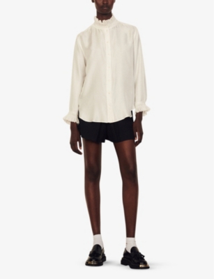 It's all in the details for Sandro. You can expect design elements such as softly puffed sleeves, delicate embroidery and ruffled collars. The brand occasionally adorns its creations with gentle prints - think ditsy florals and muted stripes. Crafted from breathable lightweight cotton and dyed in a selection of neutral and bold hues, these tops are versatile and easy to carry through the seasons.
