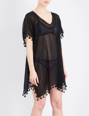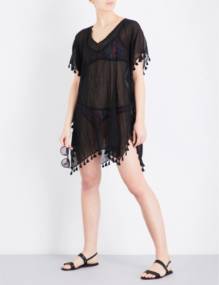 Scallop-Trim Bandeau Cotton-Linen Blend Maxi Dress