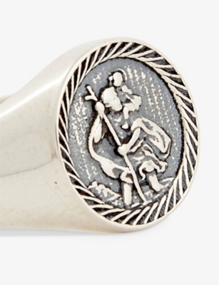 St Christopher-embossed oxidised-finish sterling-silver ring