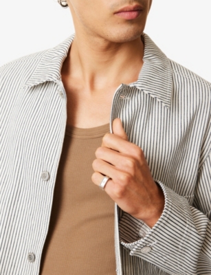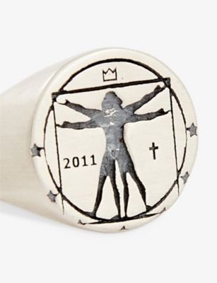 Vitruvian-engraved oxidised-finish sterling-silver ring