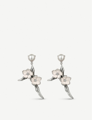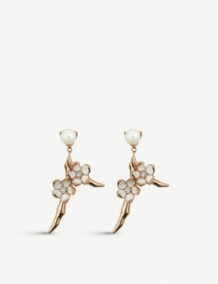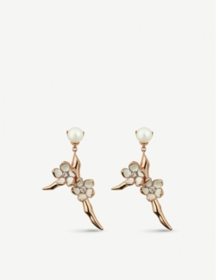 Cherry Blossom yellow gold-plated vermeil silver and diamond drop earrings- Price:€1,105.00