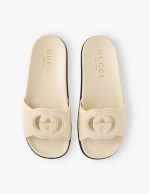 GUCCI: Branded Slip-On Leather SlidersGUCCI: Branded Slip-On Leather Sliders