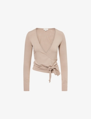 Soft Ballet Wrap Long-Sleeves Stretch-Woven Top