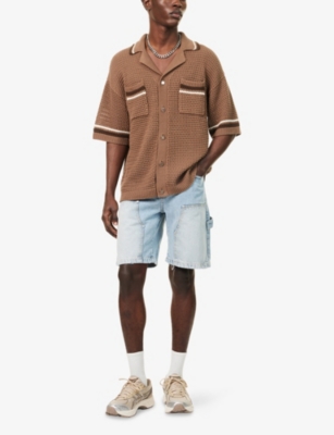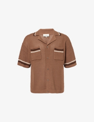Relaxed-Fit Polo-Collar Cotton-Crochet Shirt