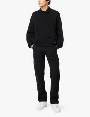 Ribbed Polo-Collar Cotton-Jersey Sweatshirt
