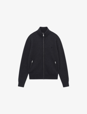 High-Neck Zip-Up Cotton-Blend Cardigan