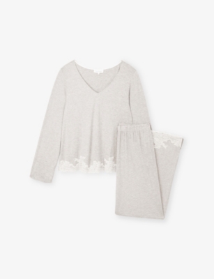 Long-Sleeve Lace-Applique Stretch-Jersey Pyjamas