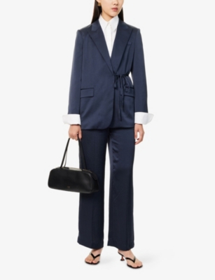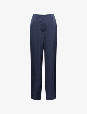 In our selection, you'll find Theory wool trousers that create an instantly smart aesthetic. We have tailored designs with plenty of discreet functional details, such as concealed fastenings and buttoned jet pockets. Darts and pressed creases make for a flattering shape. Take your pick from a wide variety of shades from classic go-with-everything hues (think deep navy and charcoal grey) as well as statement-makers like light blue or rust.