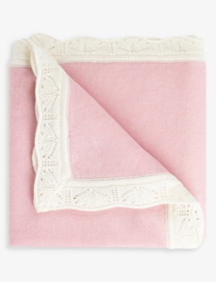 Openwork frilled-trim cashmere blanket