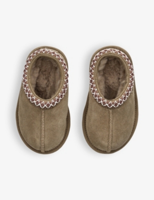 Kids' I Baby Classic logo-patch suede and shearling crib boots