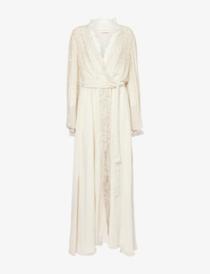 Ruffle-Collar Lace-Trim Textured Silk Shirt