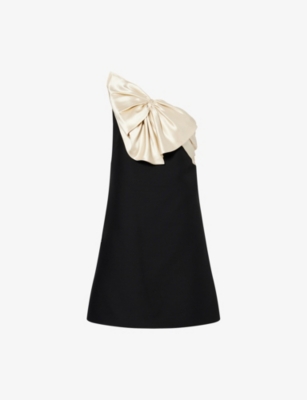 Bow-Embellishment Short-Sleeves Wool And Silk Mini Dress