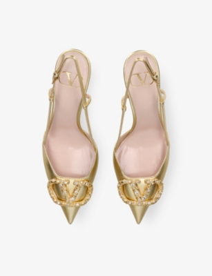 When you're looking for a contemporary romantic aesthetic, turn to our range of Valentino Garavani shoes for women. The Italian brand was founded in Milan in 1960, and quickly became known for its nostalgic take on fashion, which blends classic shapes with new ideas. In our collection, you'll find everything from lavishly studded heels to mules and camo-print trainers. Browse our Valentino Garavani footwear selection for laid-back sandals crafted from soft and supple leather, ideal for those warm-weather days. Bright colours, from lemon yellow to emerald green, make an instant impression, as do embellishments such as rebellious studs and metal hardware. Sliders and flip-flops are hassle-free footwear for afternoons spent by the pool. Valentino Garavani ankle boots are year-round favourites, especially when you choose versatile shades of midnight black and chocolate brown. Low-top trainers by Valentino Garavani create an athleisure-inspired finish that you can easily combine with skinny jeans or stretchy leggings. Fresh white is a traditional choice, while nude and pastel pink result in a subtle statement. For nights out, reach for some Valentino high heels: patent effects feel just a little futuristic while colour-contrast options are original and eye-catching. Valentino's signature rockstuds bring about plenty of attitude, as do smart pointed toes.